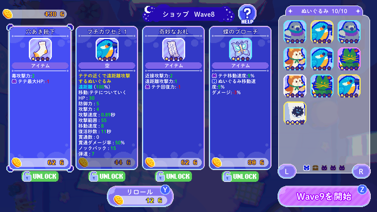いぬタイプのぬいぐるみしか仲間にできない。復活速度の速さをどう使いこなすかがカギ。