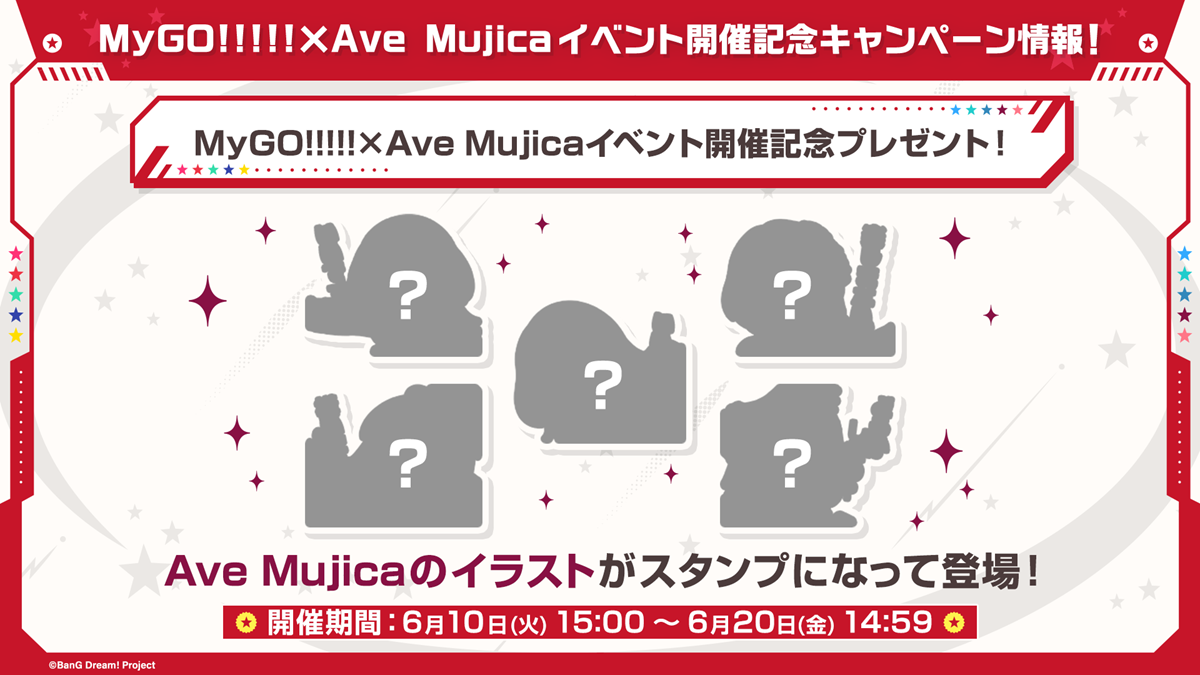 6月10日(火)15時から6月20日(金)14時59分までの期間中にログインした全員に、Ave Mujicaのスタンプをプレゼント。