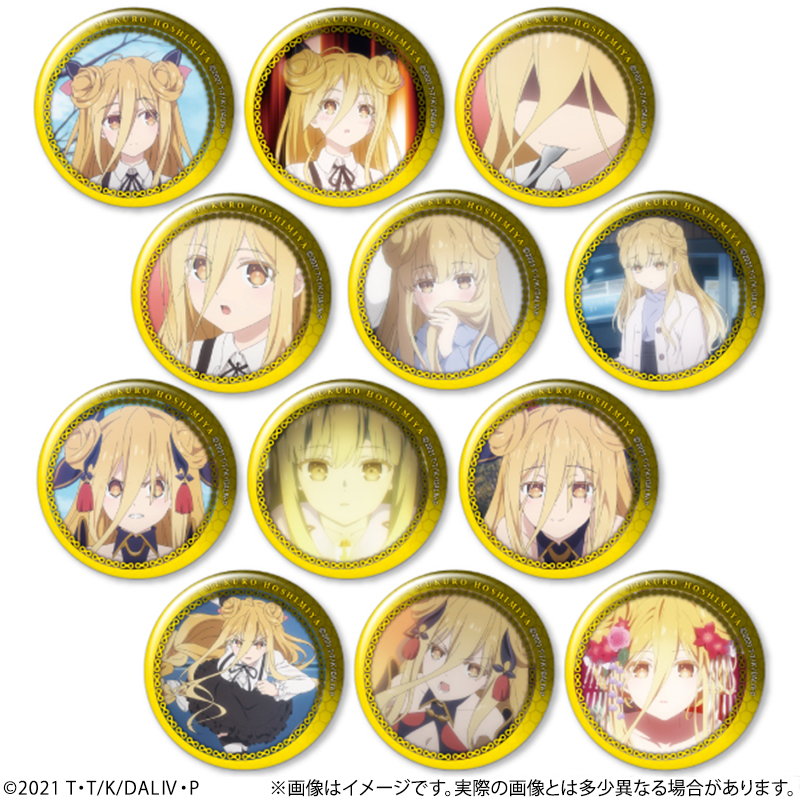 星宮六喰だけを集めた57mmサイズのトレーディング缶バッジ。