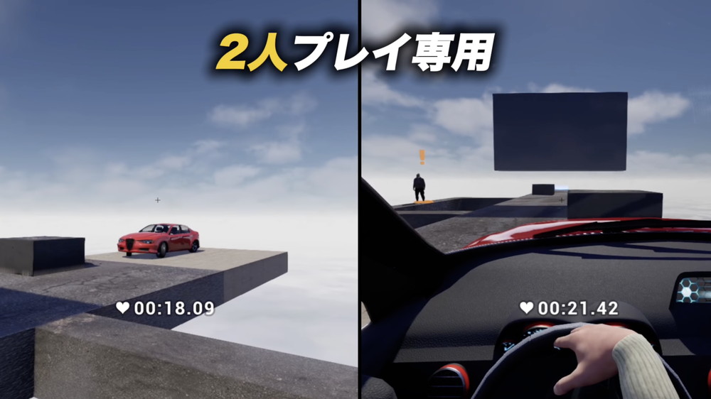2人で1台の車を目的地に“駐車"する、協力型のゲーム。やることはシンプル。運転して、停める。それだけのはずなのに、なぜか会話が噛み合わず、車が爆発するなんてこともある。