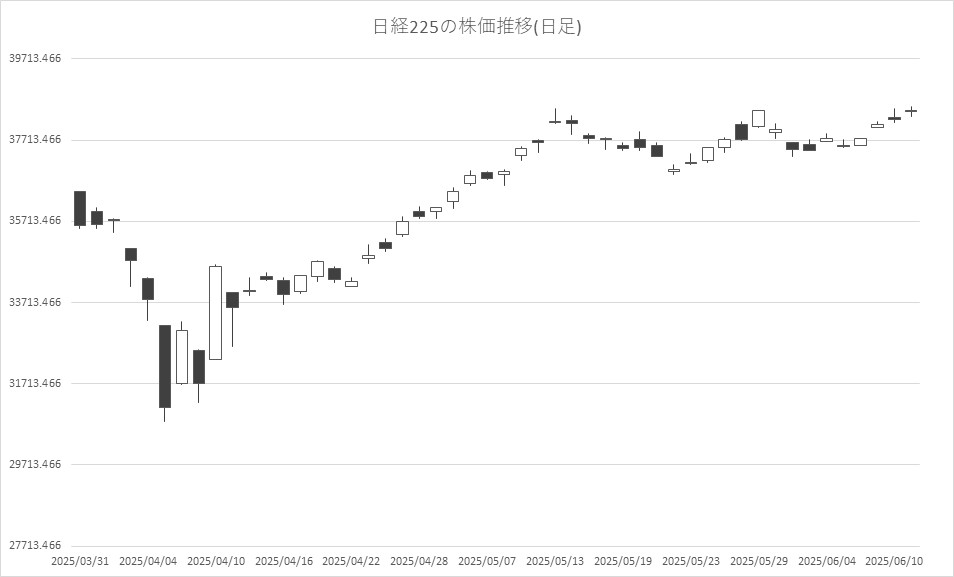 6月11日の東京株式市場は4日続伸。日経平均株価は、前営業日比209円68銭高の3万8421円19銭でこの日の取引を終えた。米国と中国の貿易を巡る協議や米国株高、為替の円安といった材料を手がかりに買い優勢で始まり、一時は318円高まで買われる場面があった。