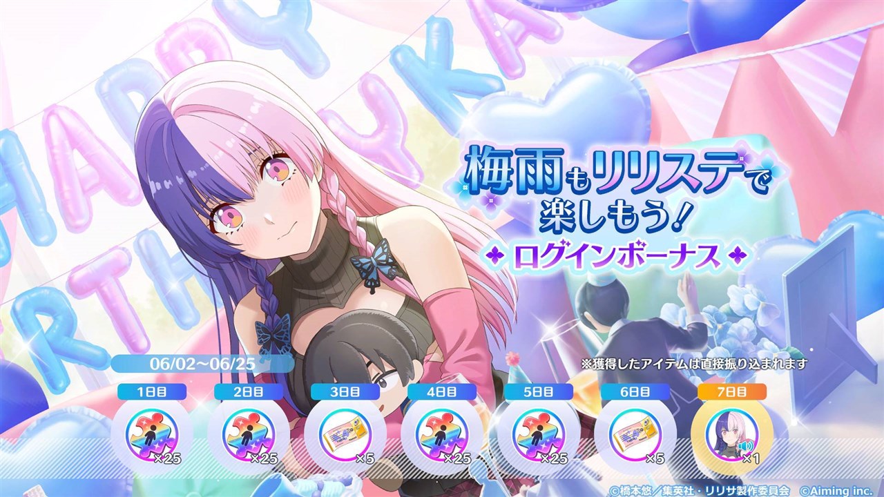 ■「梅雨もリリステで楽しもう!ログインボーナス」開催中!