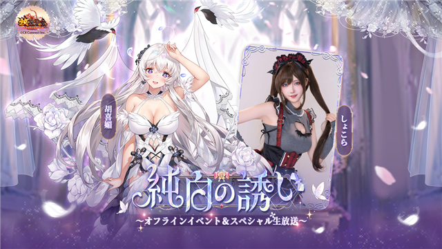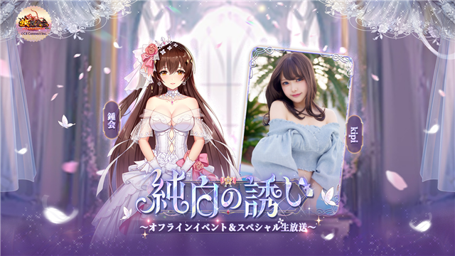 C4 Connectは、『放置少女〜百花繚乱の萌姫たち~』において、6月14日16時より「純白の誘い オフラインイベント&スペシャル生放送~最愛の人はすぐそばに~」と題した生放送を配信することを発表した。当日は総勢12名の人気コスプレイヤーが登場し、花嫁衣装をテーマとしたドレスショーを実施!そして、運営計画や豪華プレゼントも用意!