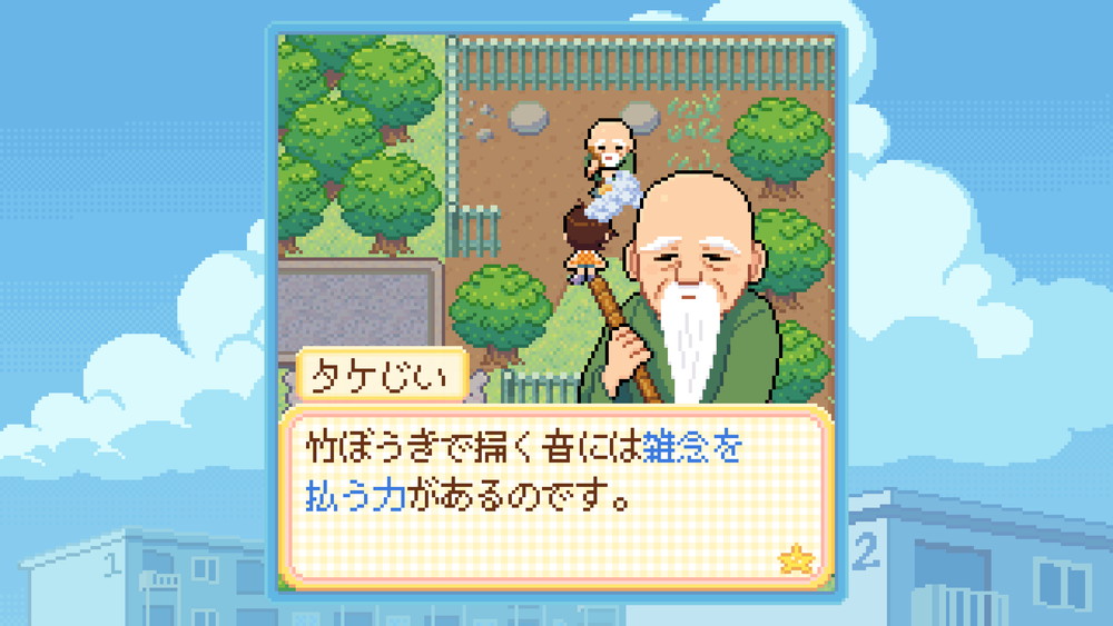 本作では、おばあちゃんがホシノに教えてくれた「五感で感じること」をパズル要素のあるミニゲームとして体験できる。木を見つけたら匂いを嗅いでみる、水たまりがあったら飛び込んでみる…団地に散りばめられた異なるミニゲームたちも見所の一つ。