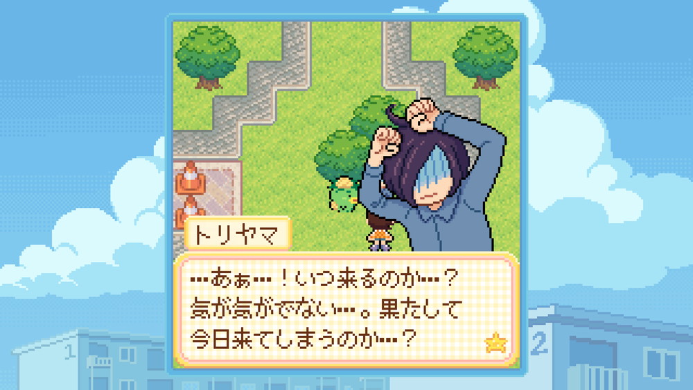 『Danchi Days』は途絶えた団地の夏祭りを復活させるADVゲーム。団地を探索し、ゲーム内ネットを駆使し、五感をテーマにしたミニゲームで招待客を集めよう!GBA風ドット絵が描くポップな雰囲気の中で、団地を悪く言う不穏なネット記事や高齢化社会など現代日本のリアルな問題に向き合うストーリーが体験できる。