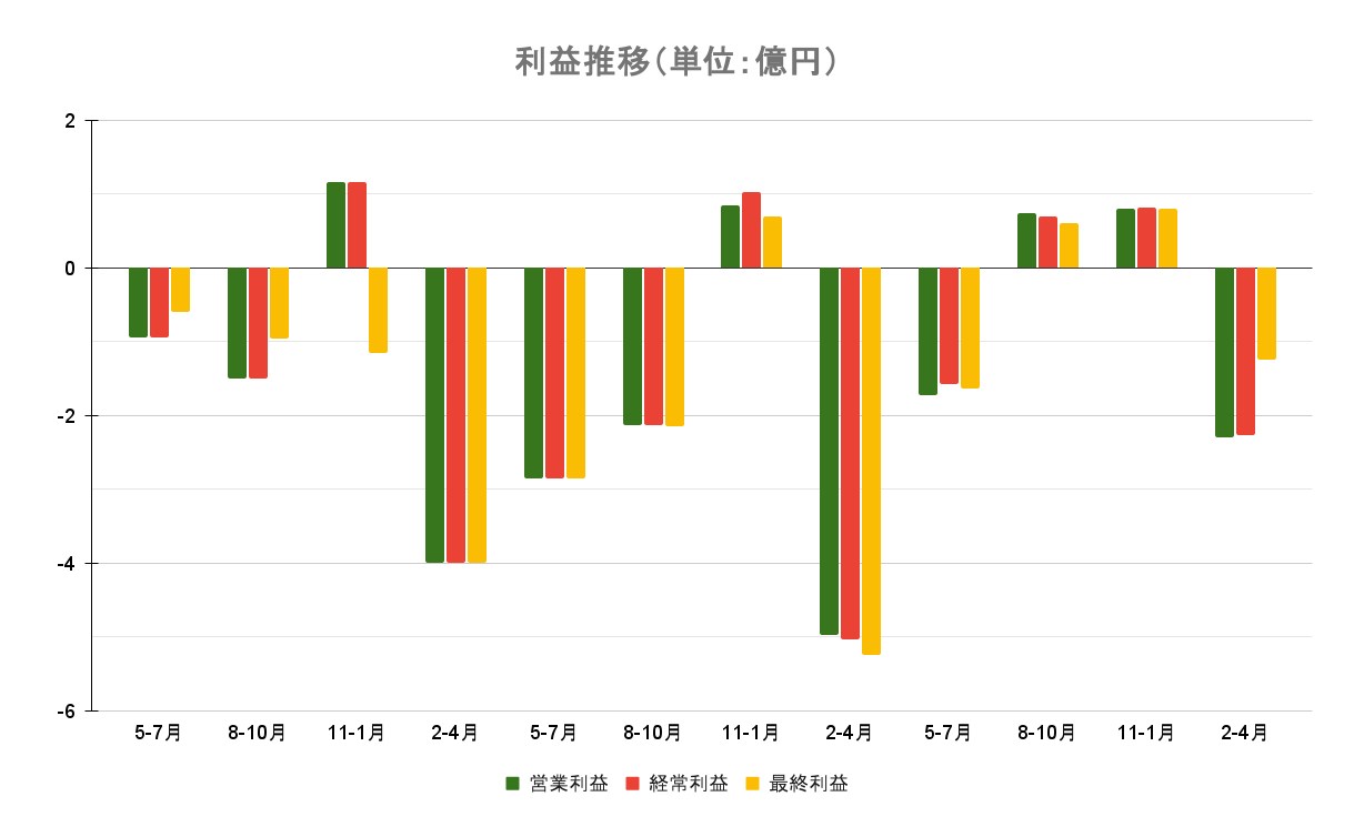 営業損益2億3000万円の赤字(前期4億9800万円の赤字)