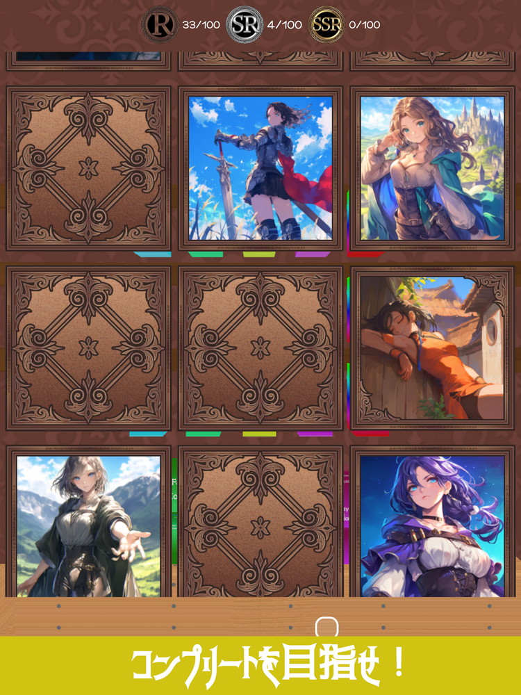 スワイプ操作で気持ちよくパックを開け、ファンタジー・ガールズのコンプリートを目指そう。