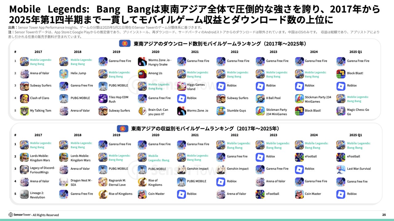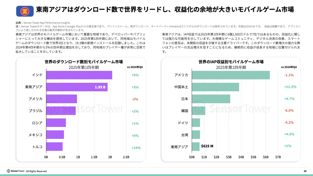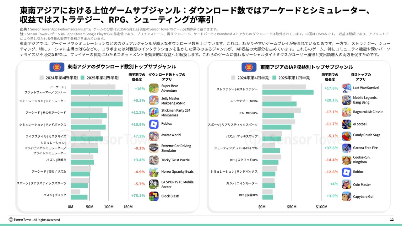 Sensor Towerは、「[レポート]東南アジア:2025年モバイルゲーム市場レポート」を公開した。