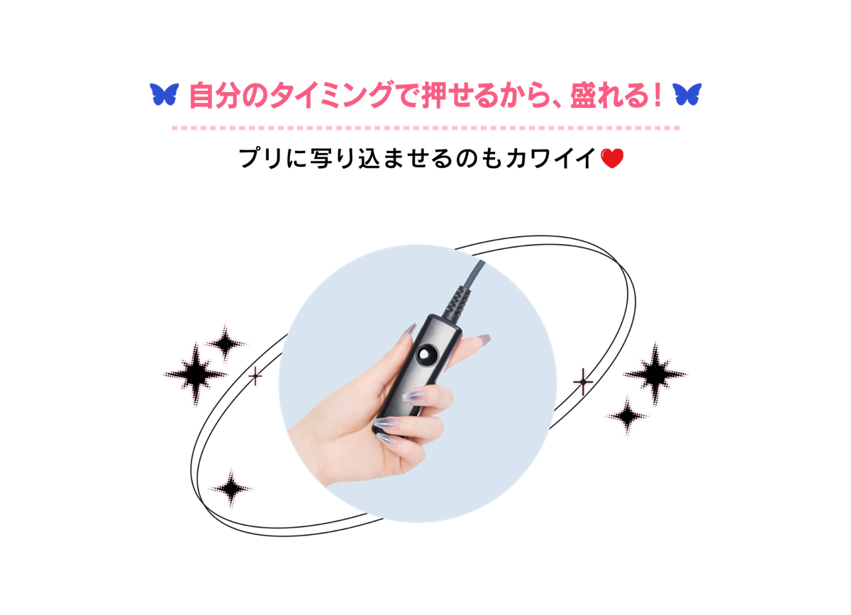 『GIMMI』で好評だった“プリリモコン”を『NICO MAKE』でも! 自分の好きなタイミングでシャッターを押せるので、納得の盛りを実現できるだけでなく、1プレイでシール用4枚、データ用15枚の最大19枚(※)まで撮影できる機能も引き続き搭載した。とびっきりの“かわいい”を実現できること間違いなし。
