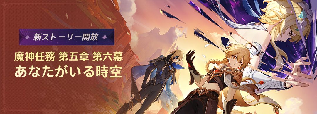 ※Ver.6.0バージョンアップまでに、冒険ランク28以上かつ魔神任務 第一章・第三幕「迫る客星」をクリアした旅人さんは、クイックスタート機能を使って魔神任務 第五章・第一幕「栄華と炎天の途」を開放できます。クリアした後、それに続く第五章の任務を全てクリアすると、本バージョンの最新の魔神任務を開放できます。
