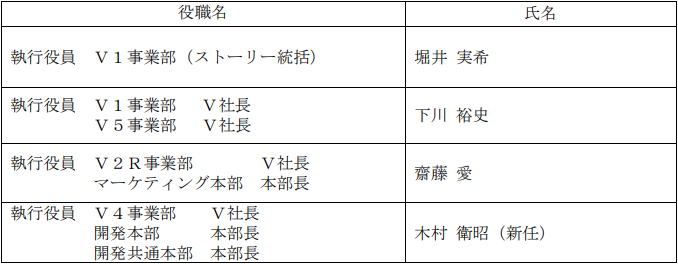 ボルテージ<3639>は、この日(6月19日)、シニアリーダー兼六本木グループ マネージャーの木村 衛昭(きむら もりあき)氏が執行役員に7月1日付で就任すると発表した。木村氏は、V4事業部 V社長、開発本部 本部長、開発共通本部 本部長にも就任する。