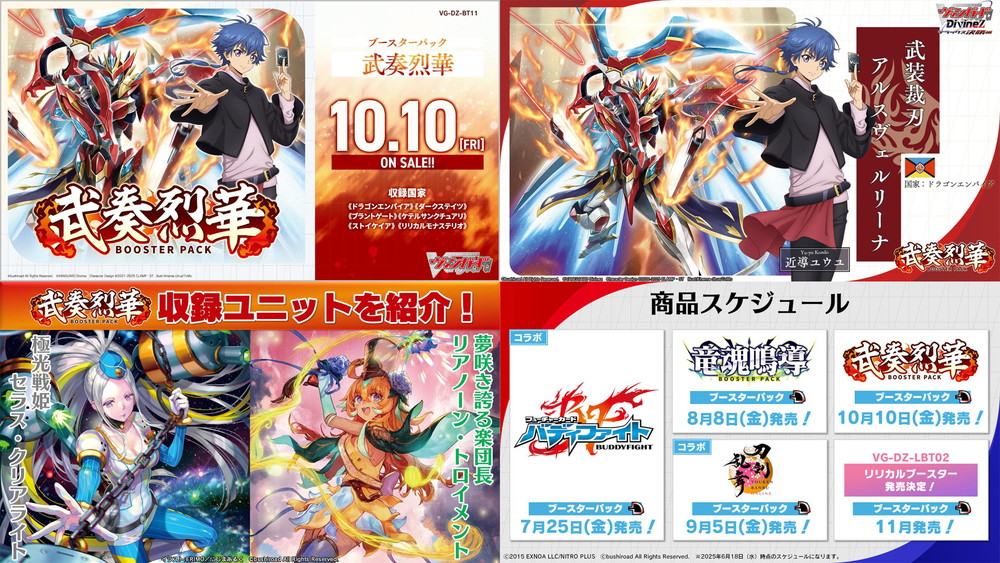 新商品としては、7月25日にタイトルブースター「フューチャーカード バディファイト」が発売され、初の「バディレア」が収録。9月5日にはタイトルブースター「刀剣乱舞ONLINE 2025」が登場し、祝装をまとった刀剣男士116振りが収録される。