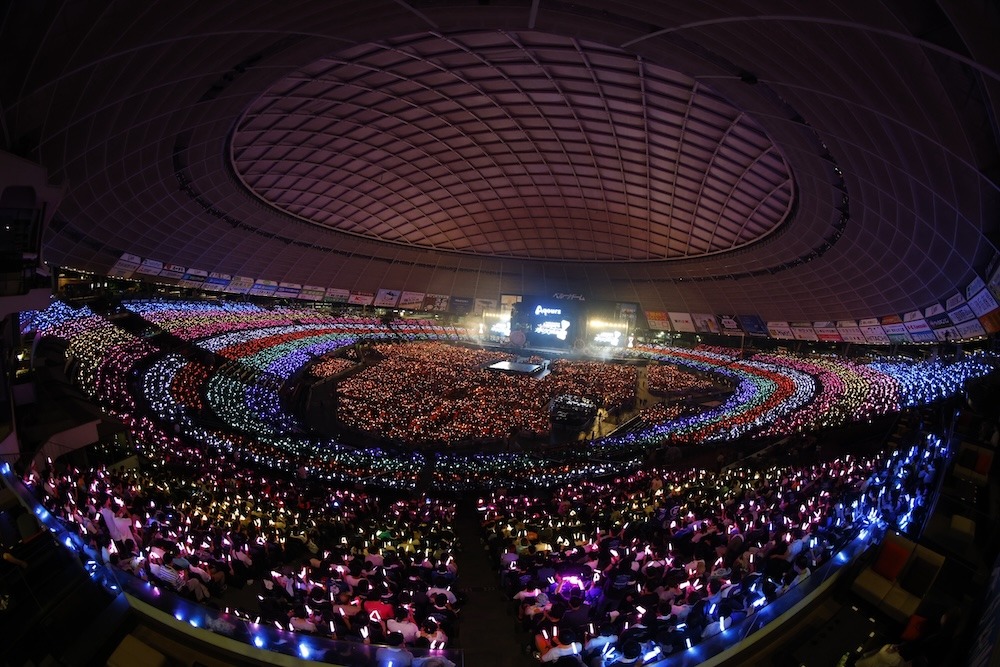 ここまで実に22曲。一気に駆け抜けたAqoursにアンコールとAqoursコールがおくられる。いつしかアリーナ席はみかん色、スタンド席は8色のペンライトに綺麗にわかれ、かつてのAqours 5thライブの時と同じく再びこの会場に虹が架かった。