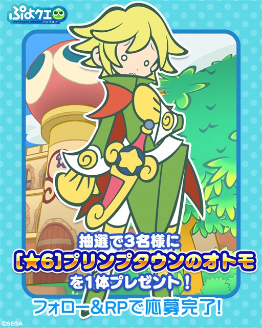 内容:『ぷよぷよ!!クエスト(ぷよクエ)』公式Xアカウントと公式Instagramアカウントにて、キャンペーンに参加した方の中から抽選で、「[★6] プリンプタウンのさかな王子(人間)」「[★6] プリンプタウンのオトモ」をプレゼントするキャンペーンを開催する。
