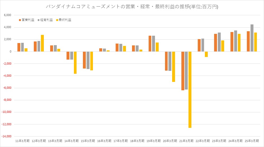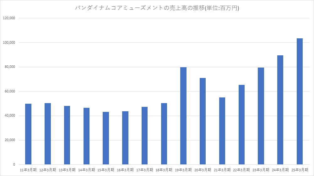 バンダイナムコアミューズメントの2025年3月期の決算は、売上高1000億円の大台を突破した。営業利益、経常利益、最終利益も増益となり、直近で最高水準となった。