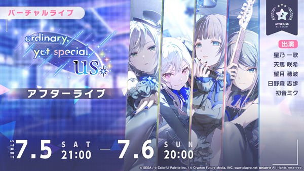 イベント終了後には「バーチャルライブ」でのアフターライブとして、「ordinary,yet special us アフターライブ」を開催する。