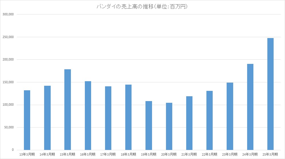 バンダイナムコホールディングス<7832>傘下のバンダイの2025年3月期(第77期)の決算は、トレーディングカードゲームやガシャポン、菓子・食品などが貢献し、大幅な増益を達成した。過去最高益となった模様だ。