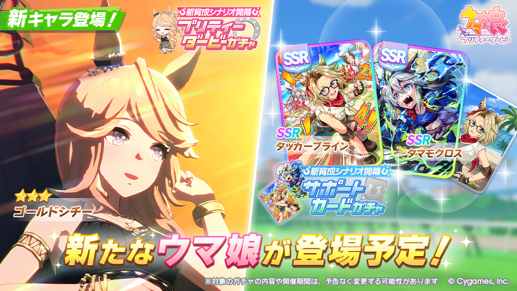 ・Cygames、『ウマ娘』で育成ウマ娘「ゴールドシチー」が登場するガチャを6月27日12時より開催…タッカーブラインとタマモクロスの新サポカも