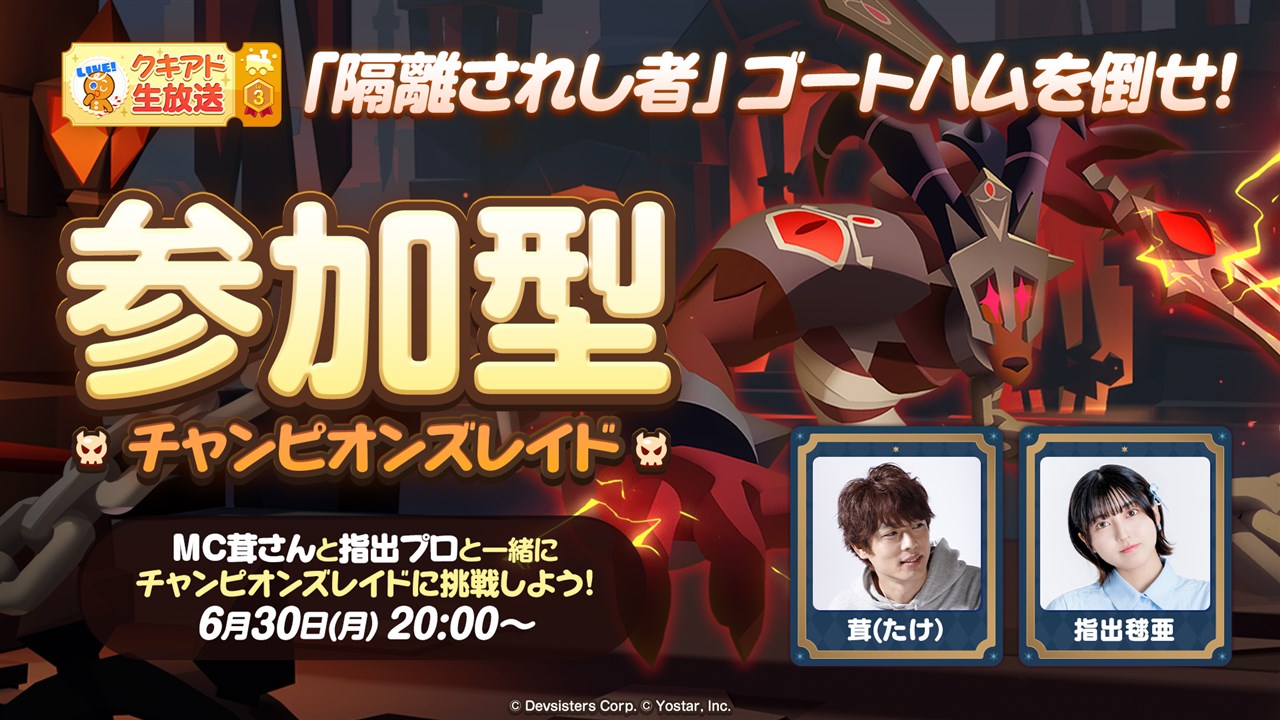 ■「クキアド生放送 Lv.3」配信決定!「チャンピオンズレイドチャレンジ」も実施!