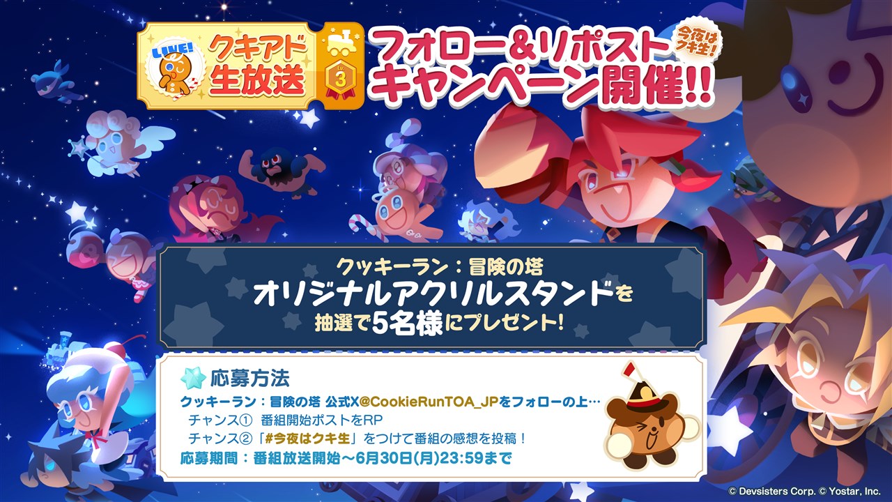 ■『クッキーラン:冒険の塔』オリジナルグッズが当たる生放送連動SNSキャンペーンも開催!