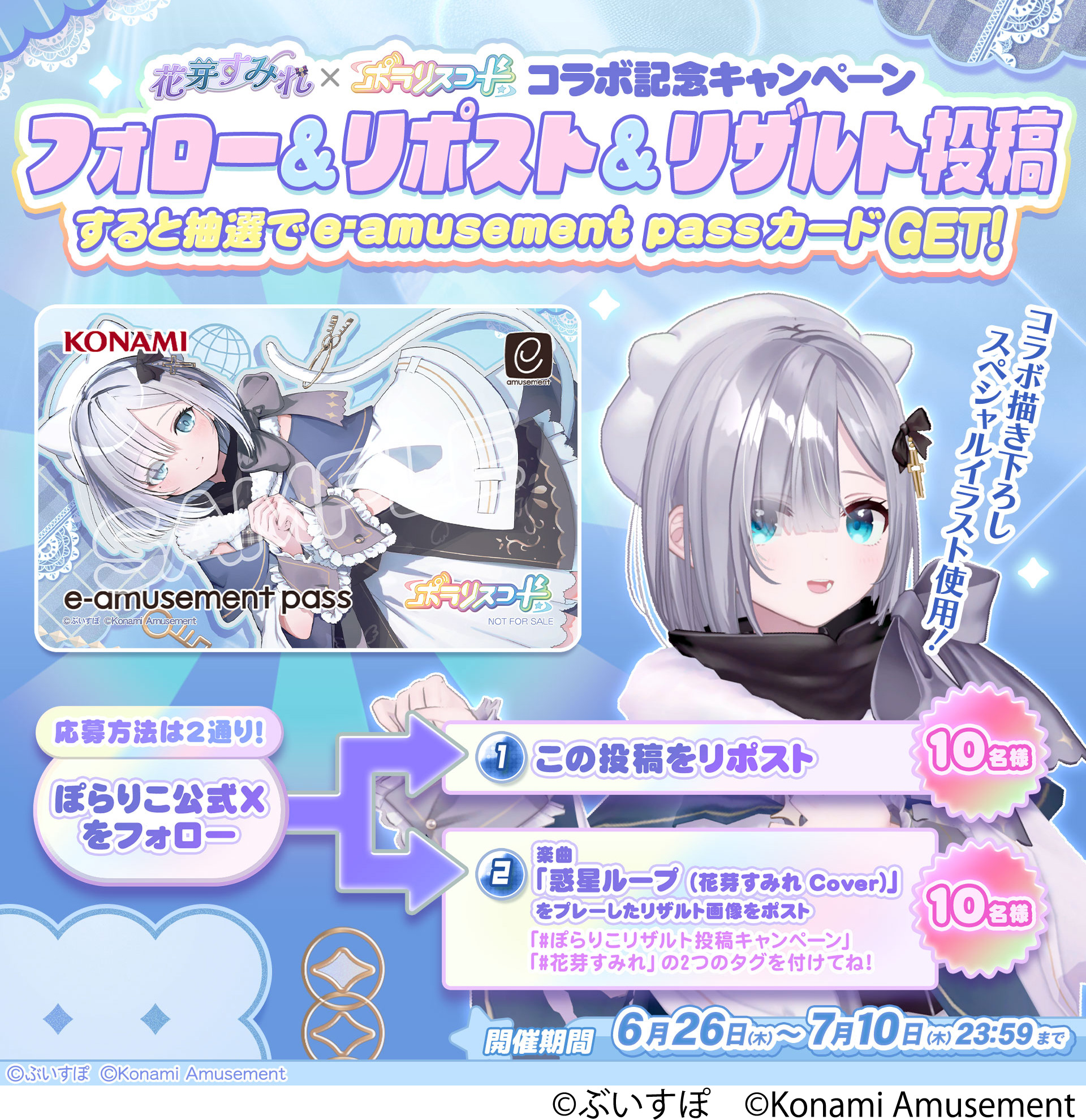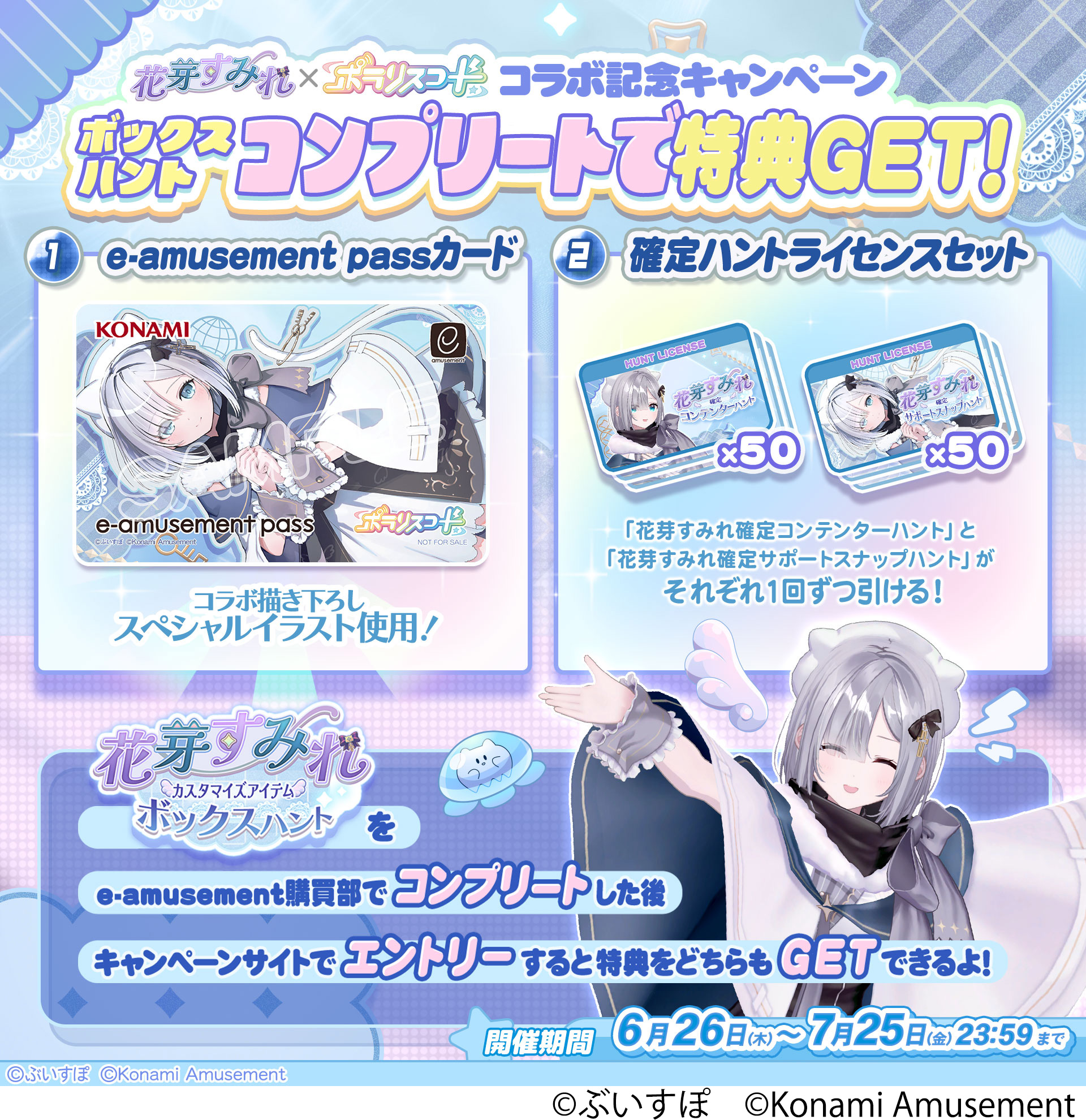 さらに、『花芽すみれ』とのコラボを記念した描きおろしの「e-amusement passカード」を獲得できるキャンペーンも各ゲームで開催する。