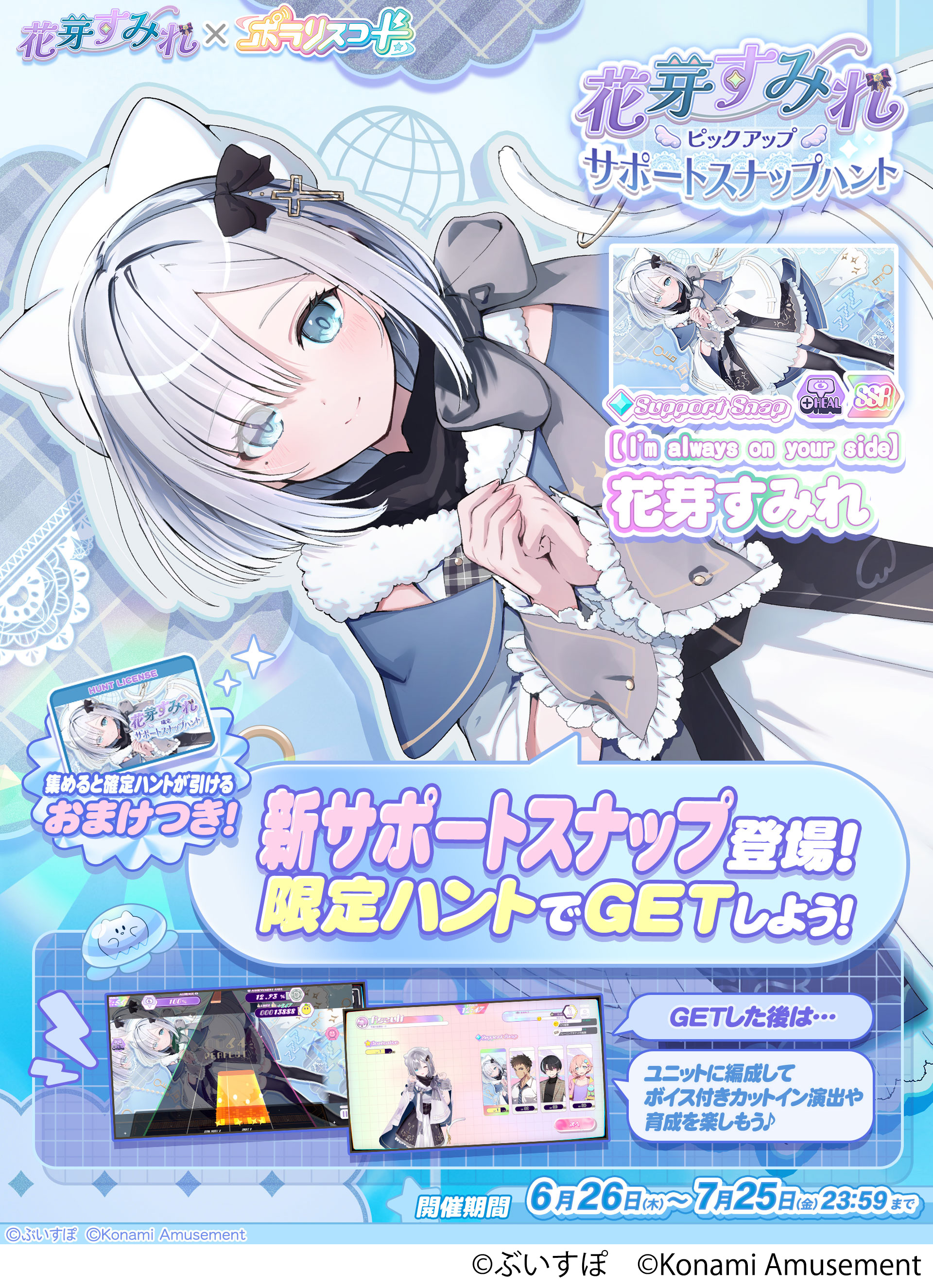 イベント開始日から『SOUND VOLTEX EXCEED GEAR』と『ポラリスコード』のゲーム内に『花芽すみれ』が登場。