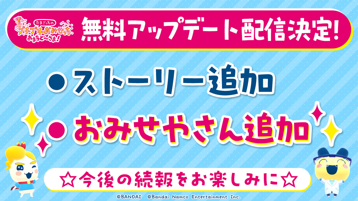 ※「追加3店舗」のプレイには、有償アップグレードパス「たまごっちのプチプチおみせっち おまちど~さま! Nintendo