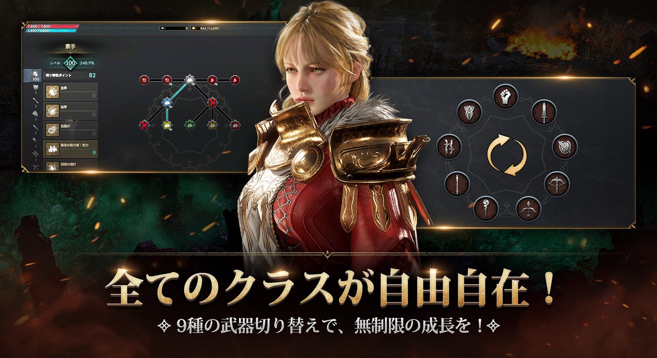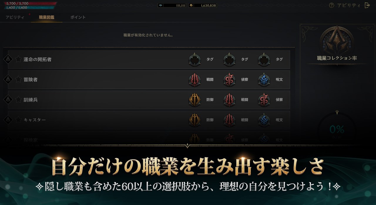 60種類以上の職業と49種以上のアビリティタグを自由に組み合わせる、革新的なシステムを搭載している。PvEとPvPの両方に対応した柔軟で奥深い成長システムにより、自分好みの戦闘スタイルを構築可能だ。