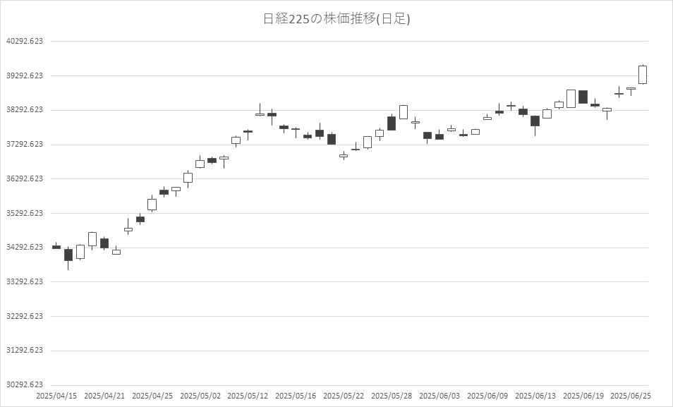 6月26日の東京株式市場は3日続伸。日経平均株価は、前営業日比642円51銭高の3万9584円58銭でこの日の取引を終えた。米国のハイテク株高の流れを引き継ぎ、朝方は半導体関連が物色されたが、幅広い銘柄が物色されるようになった。