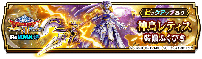 神鳥レティス装備ふくびきでは、新スキル「ホーリーラッシュ」を習得できる★5ぶき「神鳥の翼斧」がラインアップされている。