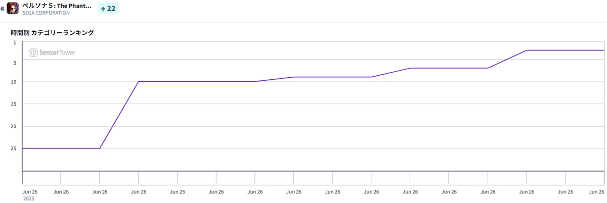 この日の大きな話題は、セガが6月26日に配信を開始した新作『ペルソナ5: The Phantom X』が、早くもトップ3に入ったことだ。