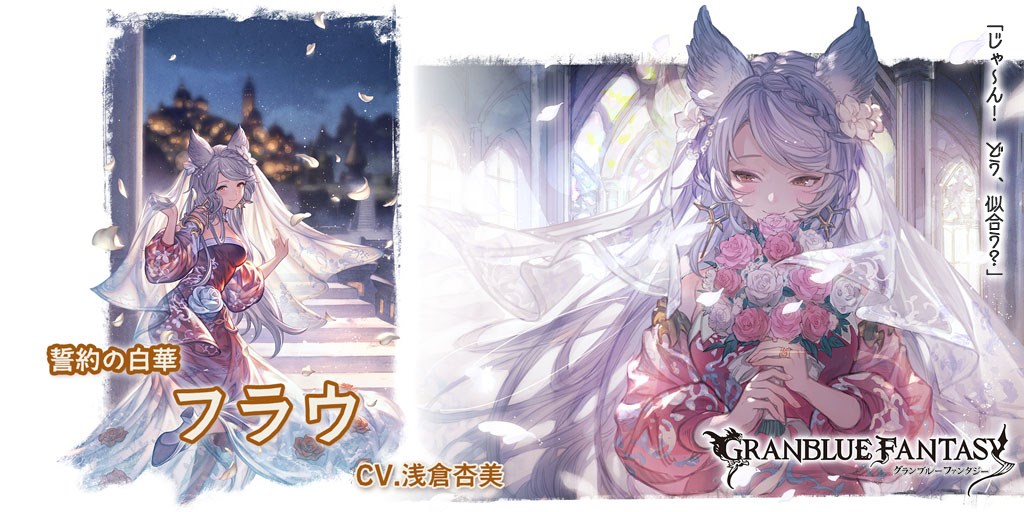アーカルムシリーズの星晶獣「ザ・デビル」の契約者であり、十賢者のひとりでもあるフラウが、なんとウェディングドレスを纏ったドレスアップバージョンの土属性のSSレアとして登場する。主人公たちと街を散策していたフラウは、デザイナーを名乗る人物からとある服装のモデルを依頼されるが、フラウは過去の経験から乗り気でないようで──