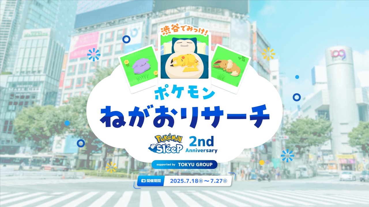 『Pokémon Sleep』では、2025年7月18日から7月27日までの期間、配信2周年を記念した初のリアルイベント「渋谷でみっけ!ポケモンねがおリサーチSupported by TOKYU GROUP」を開催する。
