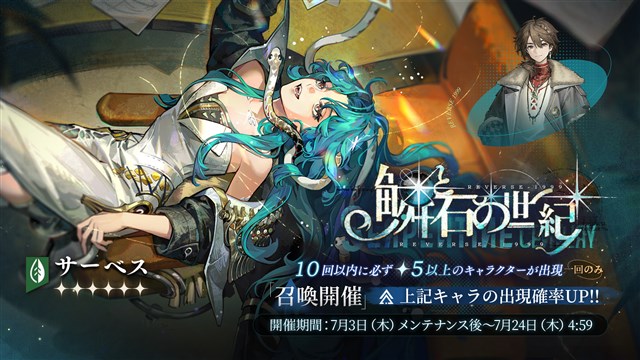 Ver2.7にて、★6キャラクター「サーベス(CV:佐藤利奈)」と★5キャラクター「ネイムデー(CV:大川颯太)」をピックアップした召喚イベント「鱗と石の世紀」がオープンした。この機会に新たな仲間を迎えよう。