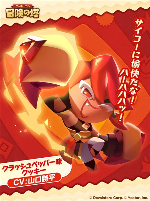 Yostarは、デヴシスターズが開発する「クッキーラン」シリーズの新作スマートフォン向けゲーム『クッキーラン:冒険の塔』において、7月3日14:00 より、「クラッシュペッパー味クッキー」ピックアップガチャを開催したことを発表した。
