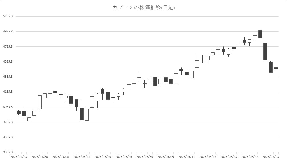 7月4日前場の東京株式市場は小幅続伸。日経平均株価は、前営業日比42円30銭高の3万9828円20銭で午前中の取引を終えた。米国での半導体関連の上昇や円安を手がかりに一時226円高まで買われる場面があったが、米国の対日関税への警戒感も強く上値を抑えた。その後は3万9850円を挟んで一進一退の展開となった。