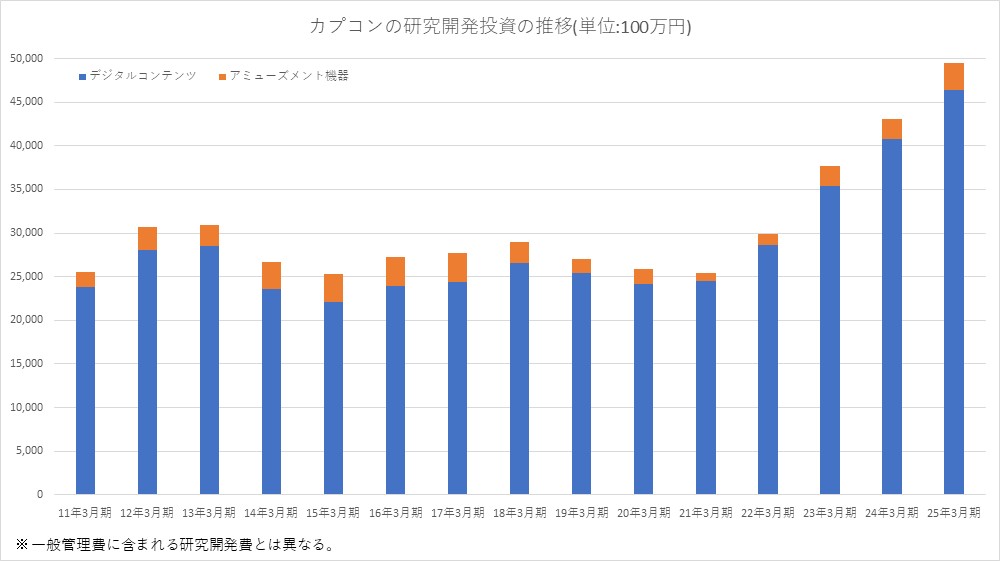カプコン<9697>は、2025年3月期の研究開発費について、前の期比15.0%増の494億9600万円と過去最高を更新した。前の期(2024年3月期)の実績は430億4200万円だった。研究開発には2846人が従事したという。