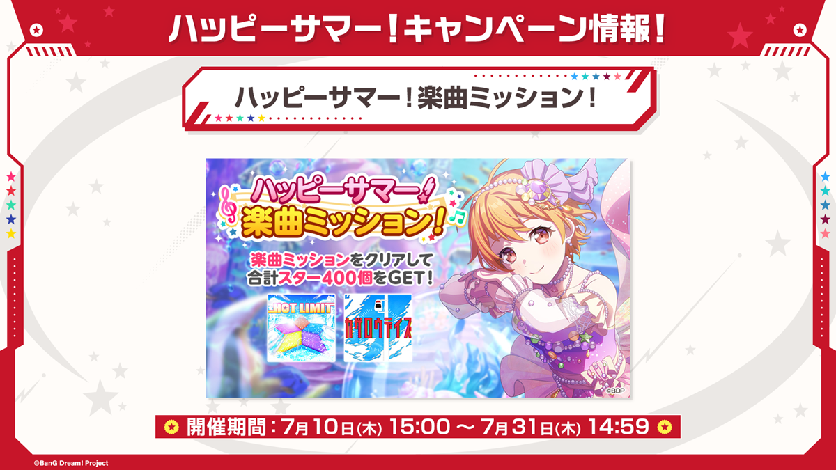 7月10日(木)15時より「ハッピーサマー!楽曲ミッション!」を開催する。