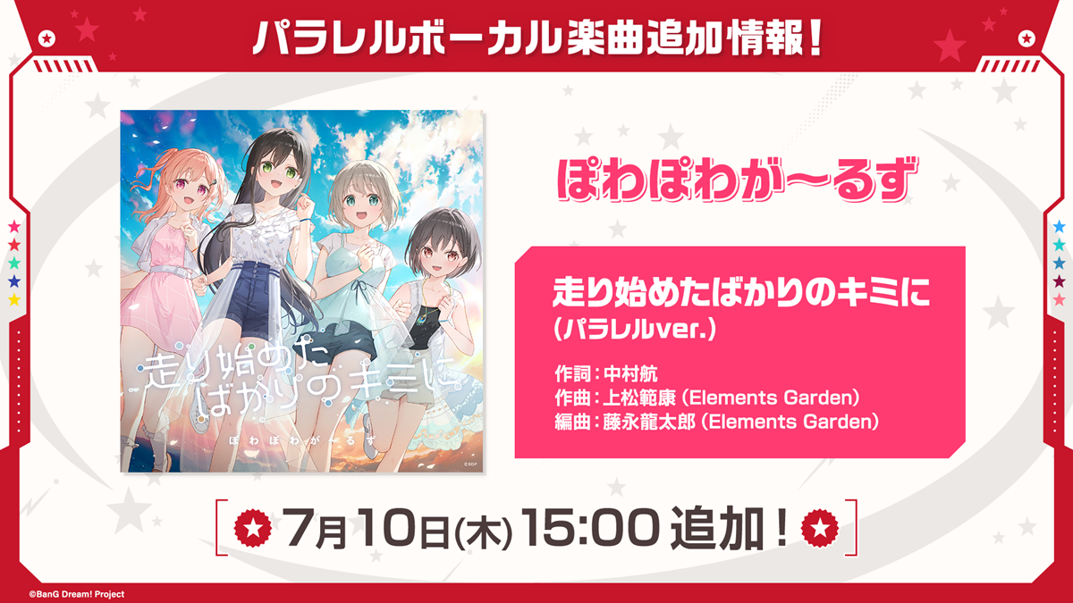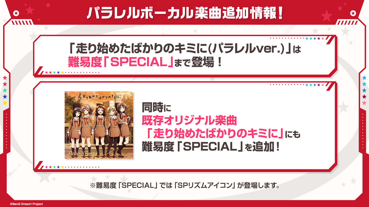 また追加時には既存オリジナル楽曲「走り始めたばかりのキミに」にも難易度「SPECIAL」を追加する。
