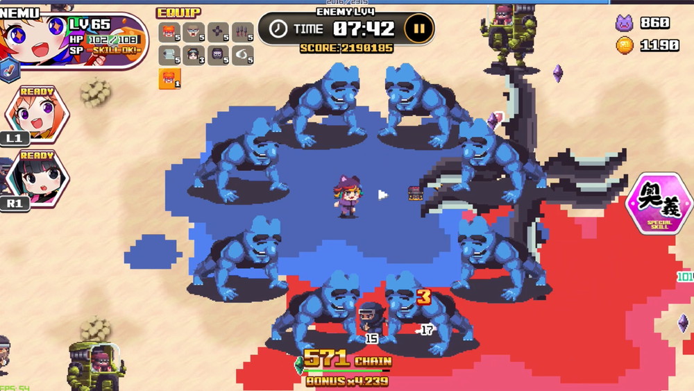 『にんぷち!』は、個性豊かな忍者たちを操作し、迫りくるモンスターを撃退していくドット絵ローグライクアクションゲーム。3人パーティの切り替えや、スキルの組み合わせによる自由なカスタマイズ、ステージクリア型のリプレイ性の高いゲームシステムが特徴。大量の敵を一掃する爽快感と、育成・収集要素がやり込みを誘う。