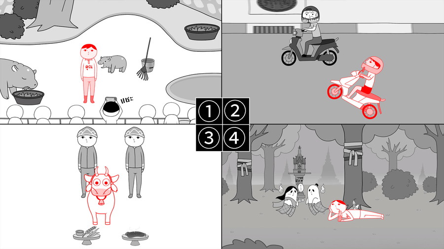 『空気読み。』に登場するキャラクター「お前」は、日本からタイに飛び立つ。タイで出会った友人と一緒に過ごすことで、友人も次第に「空気を読む」ということを学んでいく。タイの友人は、おとずれるユニークなシチュエーションを通して、果たしてどのような「空気読み。」を行うのだろうか。