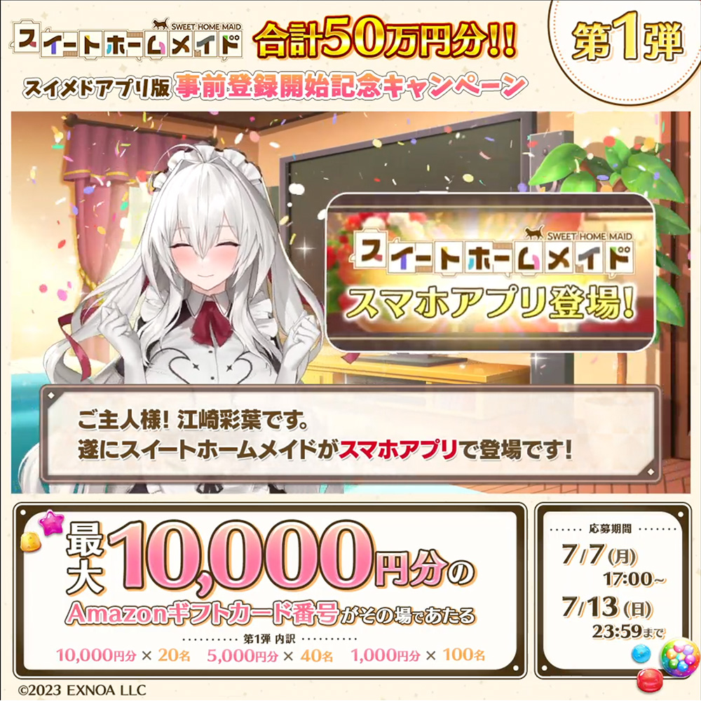 アプリ版スイートホームメイドの事前登録開始を記念して、Amazonギフトカード番号が当たるキャンペーンを実施。