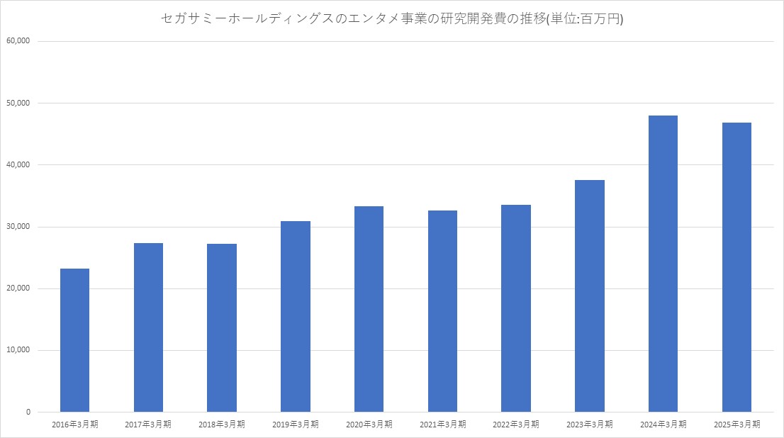 セガサミーホールディングス<6460>の2025年3月期のエンタテインメントコンテンツ事業における研究開発費は、前の期比で2.4%減の468億3600万円だった。前の期(2024年3月期)の実績は479億8400万円だった。