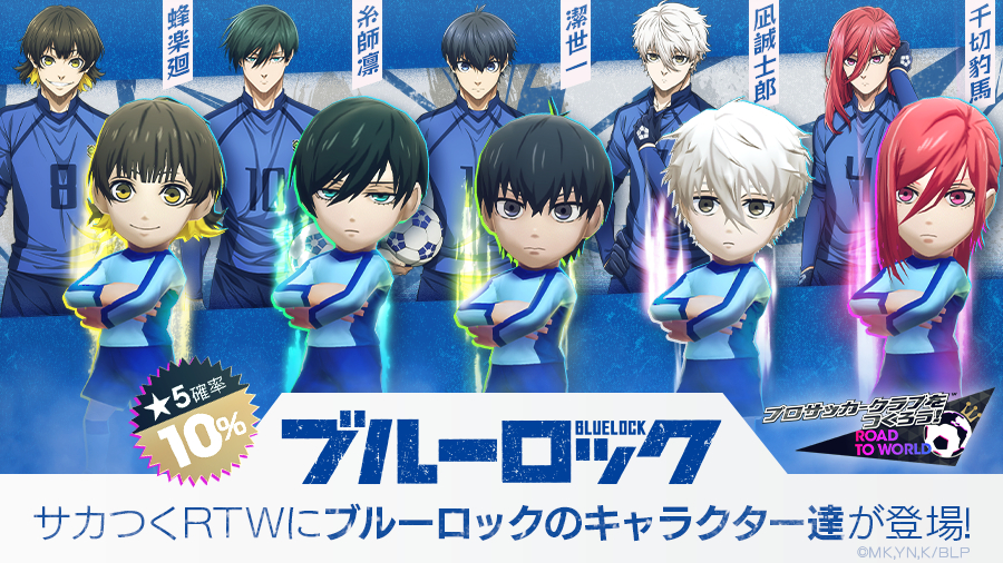 TVアニメ『ブルーロック』とコラボした特別なスカウト、“ブルーロックSCOUT”を開催! 「潔世一」「糸師 凛」「凪 誠士郎」「蜂楽 廻」「千切豹馬」「蟻生十兵衛」「我牙丸 吟」「烏 旅人」「雪宮剣優」「乙夜影汰」「二子一揮」といったおなじみのメンバーが「サカつくRTW」に登場。