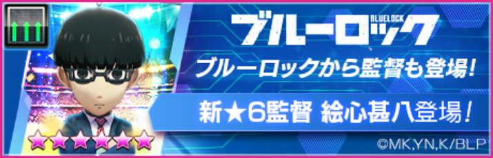 TVアニメ『ブルーロック』コラボより、新★6監督「絵心甚八」が登場!期間中に開催される特別ミッション「10試合行う」で獲得できる。