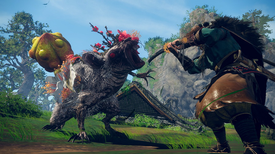 『WILD HEARTS』では多種多様な武具が登場。「野太刀」や「弓」といった一般的なものから「からくり刀」や「傘」といった一風変わったものまで、それぞれ唯一無二の特長がある。狩りで得た素材で、新たな武具を造り、それらでまた獣を狩る。その繰り返しで、獣狩はより一層強くなり、数多の強大な獣に挑む。