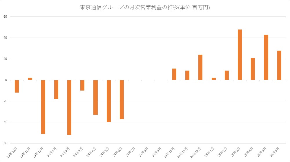 東京通信グループ<7359>は、この日(7月10日)、2025年6月度の月次業績を発表し、売上高が前年同月比17.6%増の5億4000万円、営業利益が2800万円(前年同月3700万円の損失計上)、EBITDA5800万円(同400万円の損失計上)と増収・黒字転換したことを明らかにした。