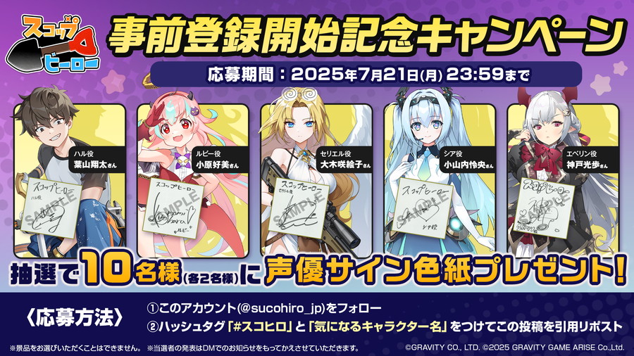 なお、事前登録開始を記念して、出演声優陣の直筆サイン色紙が抽選で当たるキャンペーンを開催中。