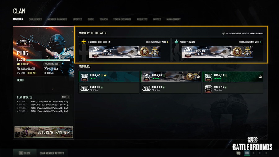 その他、クランシステムの強化も行われ、クランメンバーの週間貢献度を確認できる「クランメンバーランキング」ページが新たに追加した。さらに、チャレンジ貢献度および週間クランXP項目ごとの1位プレイヤーが「週間クランメンバー」として選定される機能も導入した。