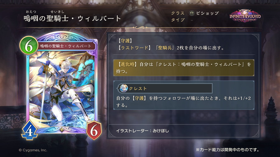 7月17日に追加となる第2弾カードパック「Infinity Evolved / インフィニティ・エボルヴ」に収録予定のカードから、《運命の黄昏・オーディン》、《双輪夜行・ギンセツ&ユヅキ》、《一ツ尾狐》、《銀氷の竜少女・フィルレイン》、《銀氷の吐息》、《暴食のアナテマ・ララアンセム》、《静寂のアナテマ・ギルダリア》、《嗚咽の聖騎士・ウィルバート》、《聖騎兵》を公開した。
